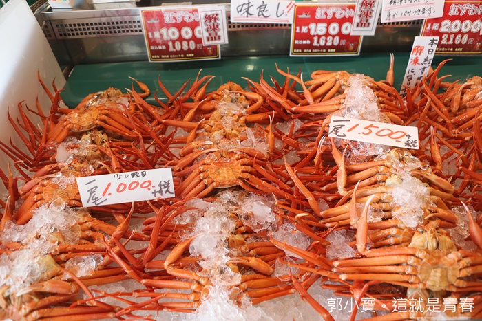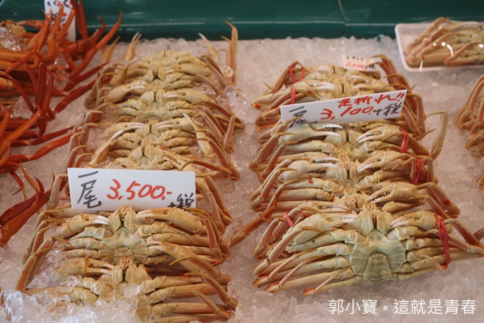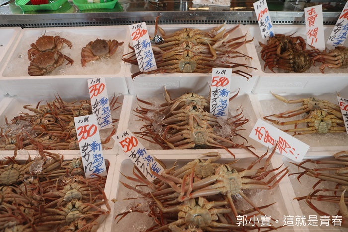 一進海鮮市場就可以看到第一家商店就是放了滿滿的螃蟹,看起來都超級美味的,這邊的螃蟹可以現場享用,所以非常受到遊客喜愛,價位都還滿便宜的,來日本就是要吃海鮮阿,我來新潟算是很多次了,有一次我們還直接在民宿就直接給它烤肉烤起來了,烤肉的海鮮跟肉品也都是在這邊買的,價位真的很便宜。