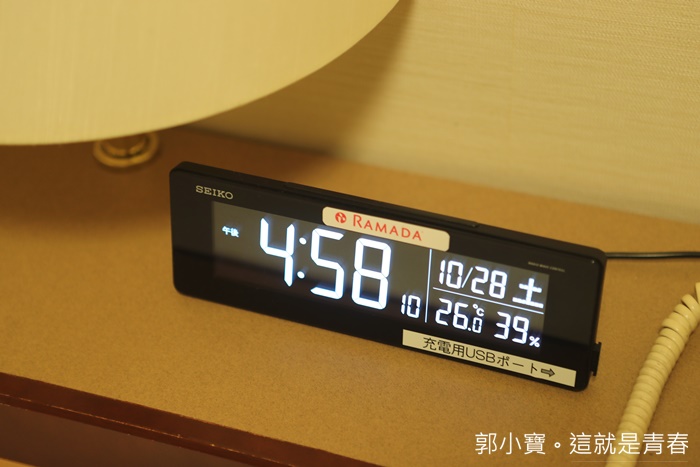 床頭有崁入式鬧鐘以外最貼心的就是有USB插座,現在每個人都習慣睡前划手機,床頭有充電座真的超方便的,每次我住飯店看到床頭有USB座都會異常開心。