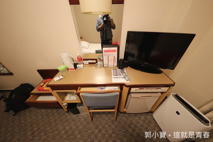 | 桌子不算大,桌子旁邊是行李箱櫃也不大,擺上電話跟電視銀幕後其實桌子的空間有點小。 |
