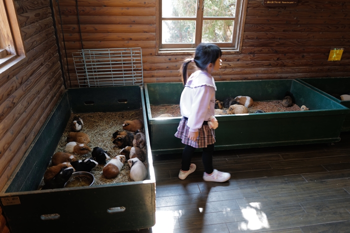 | 超可愛的天竺鼠區,女兒也超愛這個地方,進入消毒後只要坐好,工作人員就會抓一隻天竺鼠放在你的膝上,並會引導你如何安撫這些可愛的小動物,也會給手套跟毛巾避免遊客跟動物直接接觸,很讓人放心,小朋友也可以趁這次機會完全的親近小動物。 |