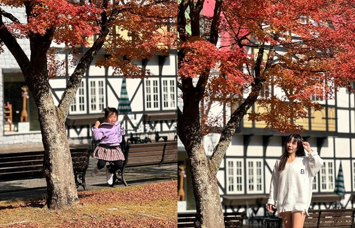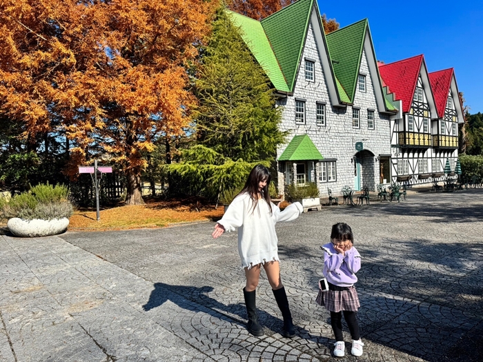 | 大分野生動物園園區內也有很多造景非常好拍照,袋鼠區旁的歐洲建築搭配盛開的紅葉,讓人彷彿就像來了歐洲般,真的好美,遇上好天氣真的超舒服的。 |