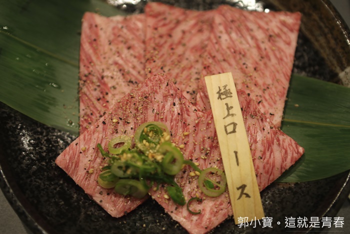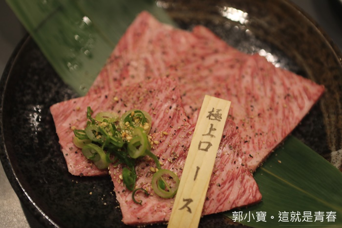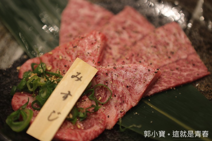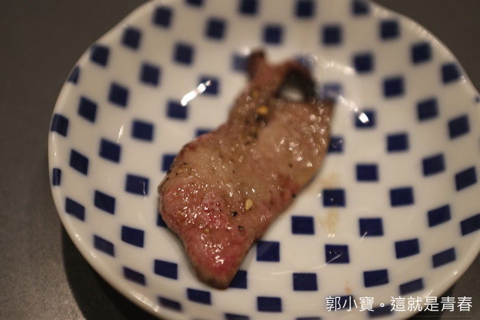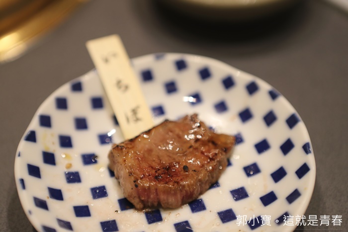 | 終於來到阿波和牛油脂最多的肋眼了,看看那油花真的分布的像是大理石的紋路一般美麗,灑上一點蔥鹽是我最喜歡的調味方式。 |