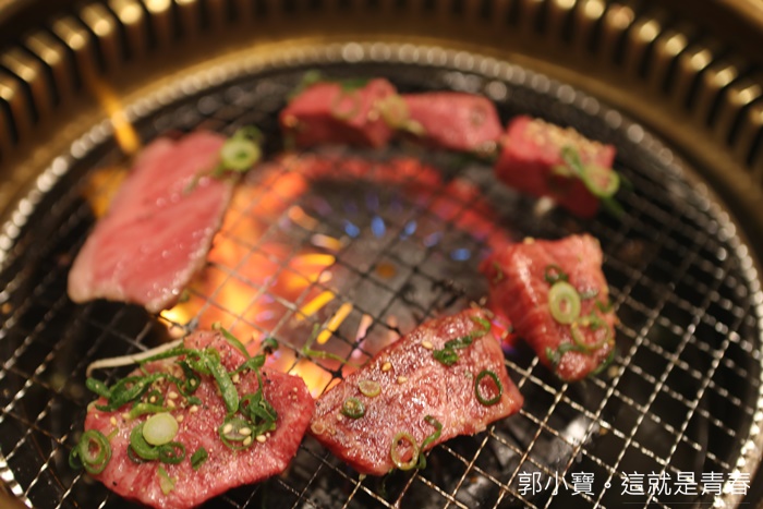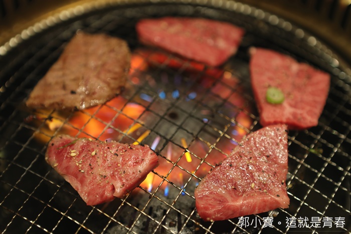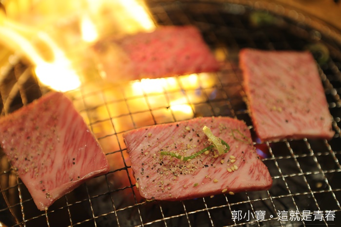 | 放上烤爐瞬間就發爐了,因為油花真的太多了,瞬間就讓我的口水直流。 |