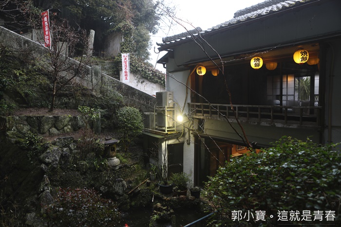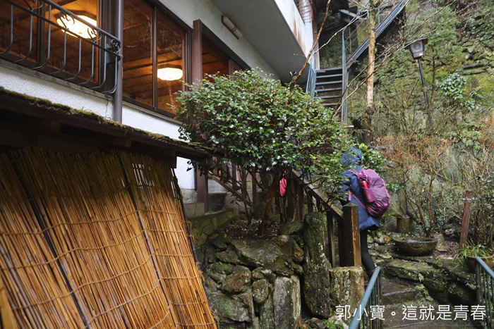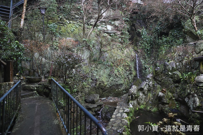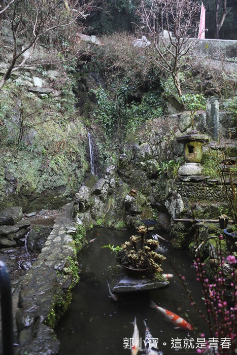 | 通往玻璃門後面原來這邊別有洞天,這邊後面還有兩棟老建築物,應該就是享用餐點的地方,最有名的就是發源地的小瀑布,也是燒餅名稱的由來, |