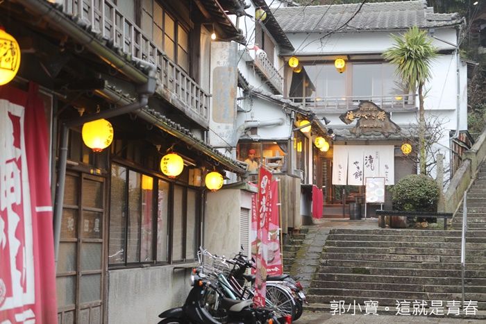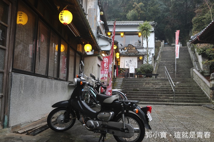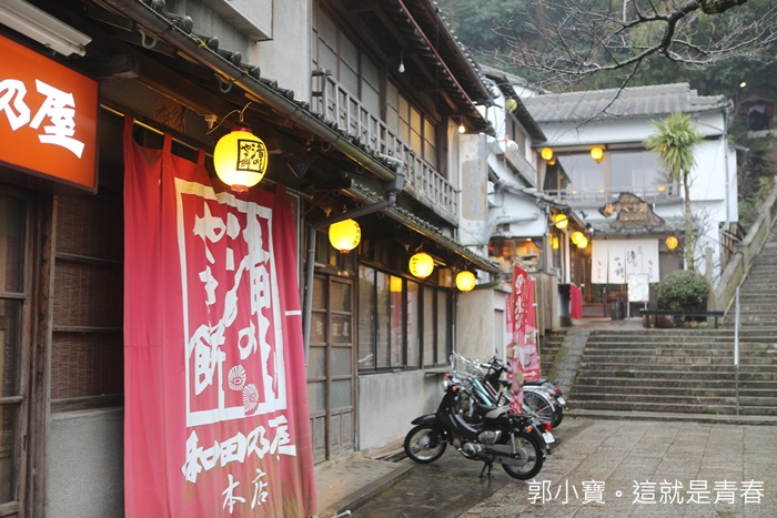 | 瀧之燒餅和田乃屋本店所在的位子就在眉山腳下,不管是街道還是建築都充滿了舊日本的風情,我一到這個地方就愛上了這裡,日本就該在這個樣子阿,雖然當天下著毛毛細雨,但是一點都沒有影響我的心情,如果打把油傘的話就更有那個味道了。 |