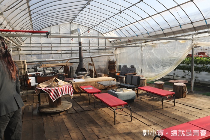 | 草莓用餐區已滿混搭的,重點是旁邊還有一個烤爐,基本上我很少回休息區吃,幾乎邊採邊吃超過癮的。 |