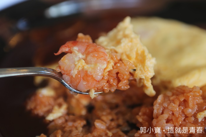 | 歐姆厚蛋跟番茄炒飯入口真的超滿足的,番茄炒飯再沾著牛膠醬汁也很無敵,我個人偏愛沾著牛膠醬汁一起入口,那滋味層次變化無窮,好吃得要命,就連蝦子都很新鮮塊頭又大,超推薦的!!! |