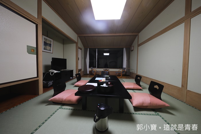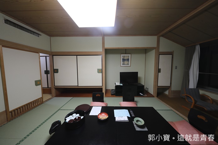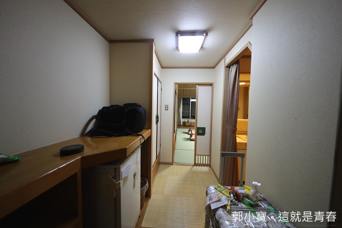 | 打開房門後就看到超大一間的和室房,3000元台幣可以住到那麼大間的房間真的超划算的,且榻榻米保養得很好,基本上像這種榻榻米整理很好的飯店會建議大家不要直接把行李拖進來榻榻米上,因為很容易壓壞榻榻米,可以在門口先放倒後再推進來。 |