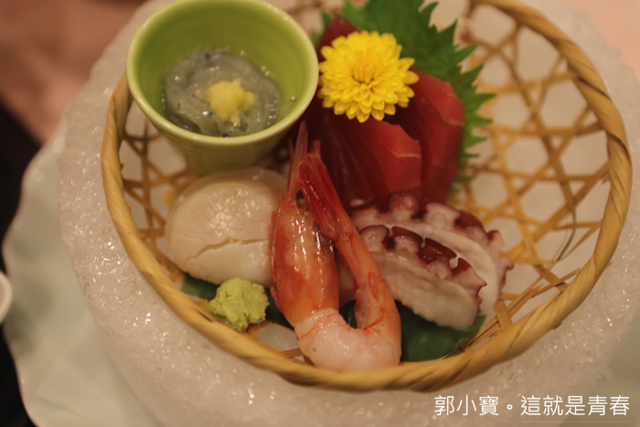 | 各種生鮮水產,甜蝦跟干貝都超甜,生魚片跟章魚也都很好吃! |