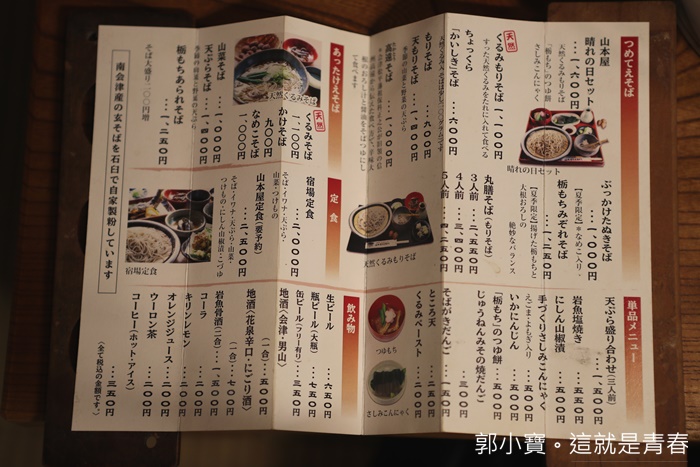 | 山本屋的菜單幾乎也都是以蕎麥麵為主,只是配法跟套餐非常多變化,可以選擇的組合很多,價位也都是滿正常的價位,不會因為觀光熱門景點區域就比較貴。 |