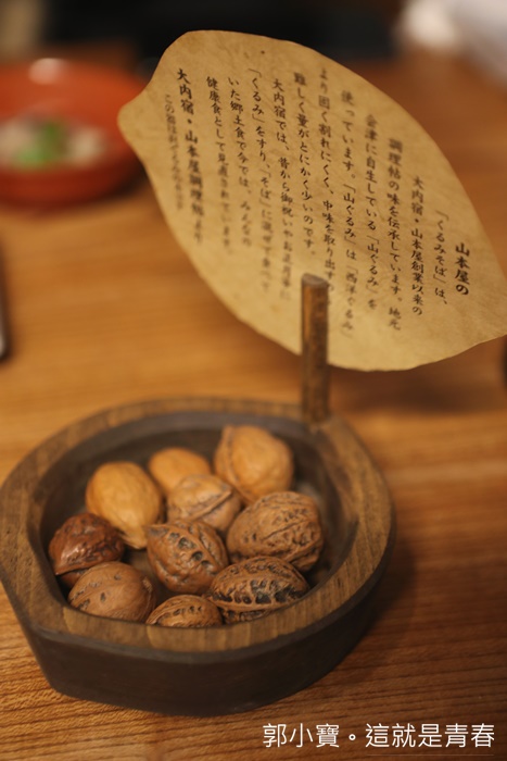 | 桌上還放了栗子? 好像是免費提供給客人吃得招待小物,但是我沒有吃,因為我不會剝殼,老實說我完全看不出來這是什麼。 |