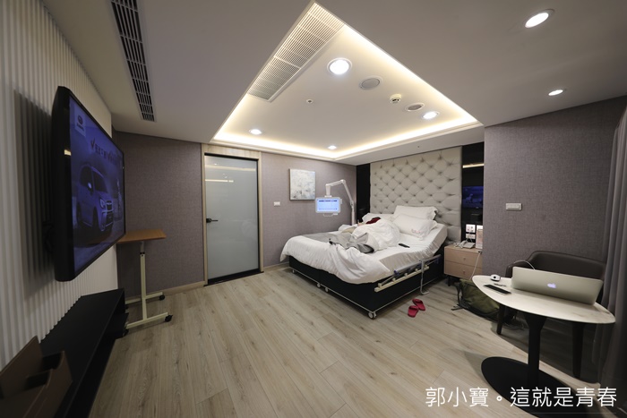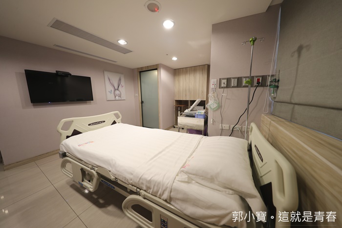 | 光是五樓護理站的待產室就有點像是一般診所的單人病房了,空間非常大空調也很穩定,床前都還有電視以外,廁所也很舒適,菡生婦幼診所每個房間空間都一定會有對外窗,對外窗對我個人來說我還滿重視的。 |