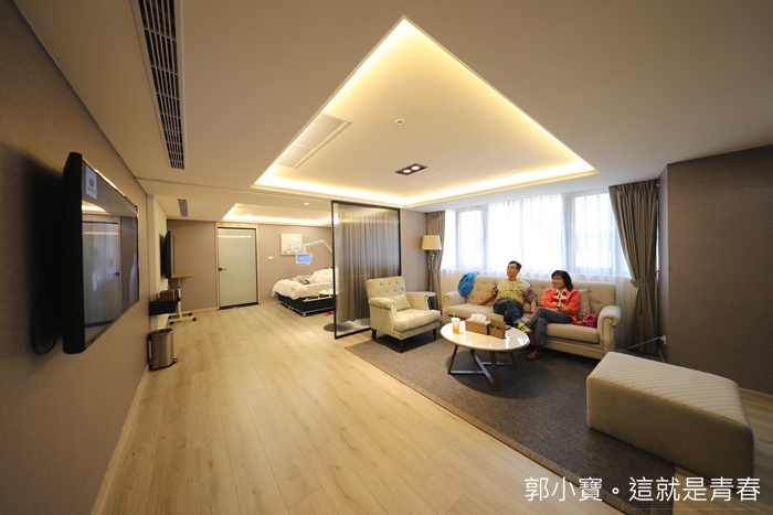 | 我們挑選的是7樓6800的大房,7樓的部分主要都是中大房型,我個人覺得6800在板橋一點都不貴,因為房間真的超大,分成兩個空間,大客廳跟寢室兩間,且不管是裝潢材料還有整個房間的硬體都非常紮實,不是用那種便宜家具跟裝潢,因為我跟太妃兩家人還有朋友真的很多,加上我爸媽跟岳父岳母兩家人的兄弟姊妹都天天報到,兩家人真的很難得可以全部鋸再一起聊天,因為寶貝的誕生而開開心心的聚在一起聊天,這真的很難得,每天病房都很熱鬧,也因為這樣才發現它們的隔音效果非常的好,我們這樣吵吵鬧鬧的隔壁都說沒有聽到什麼聲音。 |