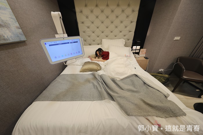| 孕媽咪主要休息的空間也滿大的,連接著盥洗空間,床鋪的部分是兩張電動單人床合併起來的,這一點倒是爽到了我,晚上不用睡沙發還是躺椅了,臥室空間的部分還有一張單人桌椅。 |