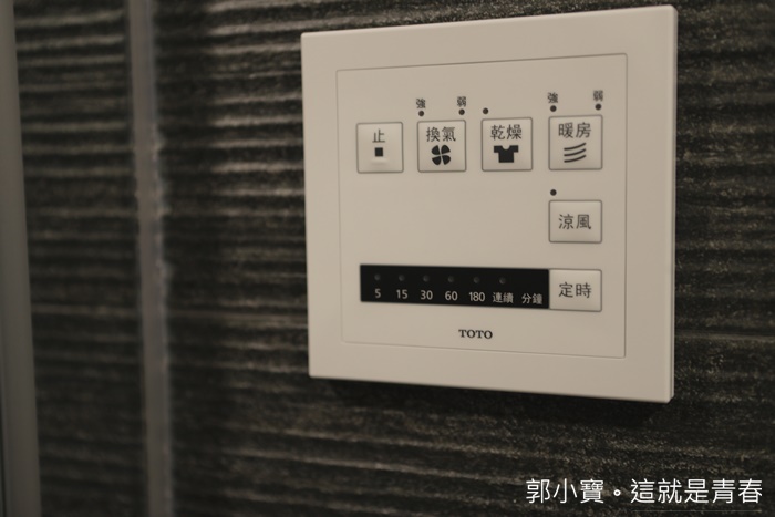 | 浴室裡面也有暖房系統,對於剛生產完的孕媽咪來說也是一個很實用的功能,衛浴設備都是使用TOTO系統,看起來確實耗費巨資! |
