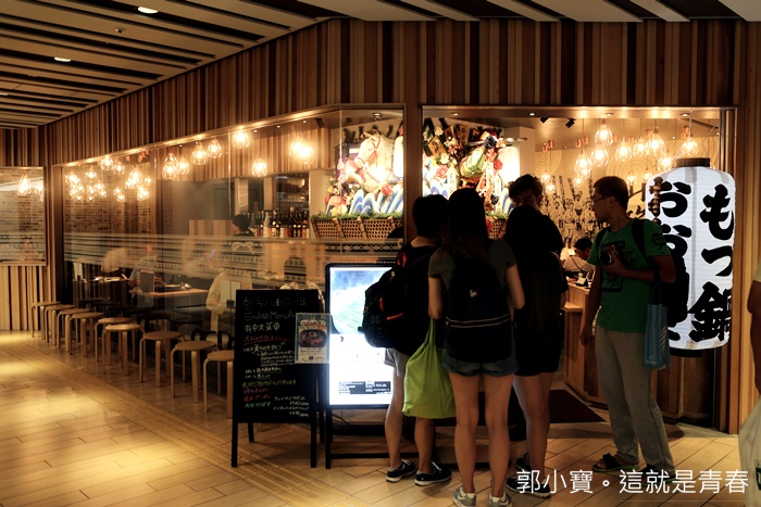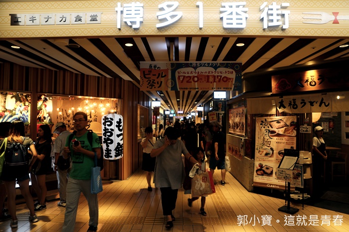 | 還沒進入店內就可以看到店內的人潮滿到了店外,幾乎是博多一番街裡面人潮最多的餐廳了,尤其經過門外的時候就可以聞到陣陣的香氣飄散出來。 |