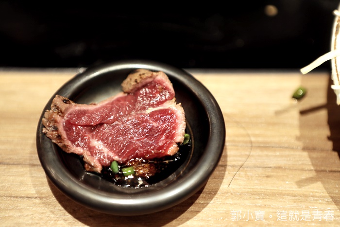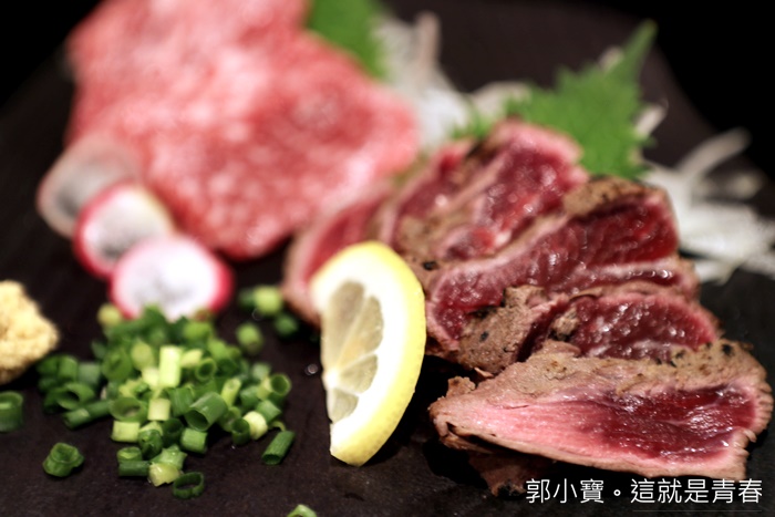| 這一塊生馬肉讓我更喜歡,外皮似乎有炙燒過,但是入口後那肉質更軟綿,彷彿含在口裡就會融化一般的綿密感,咀嚼起來有點像是吃生魚片,這一款生馬肉部位也很好吃。 |