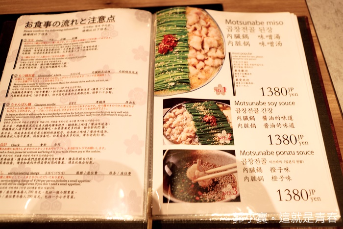 | 看了一下菜單除了大腸鍋以外還有其他的品項,不過主角當然還是福岡必吃鍋物大腸鍋,除了單點的部分也有套餐的選擇。 |