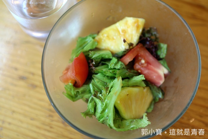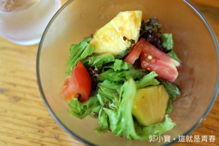 | 沙拉分量沒有很大,但是蔬菜水果通通都有,吃起來還滿爽口的,尤其在7.8月酷暑來到博多的我們真的非常消暑。 |