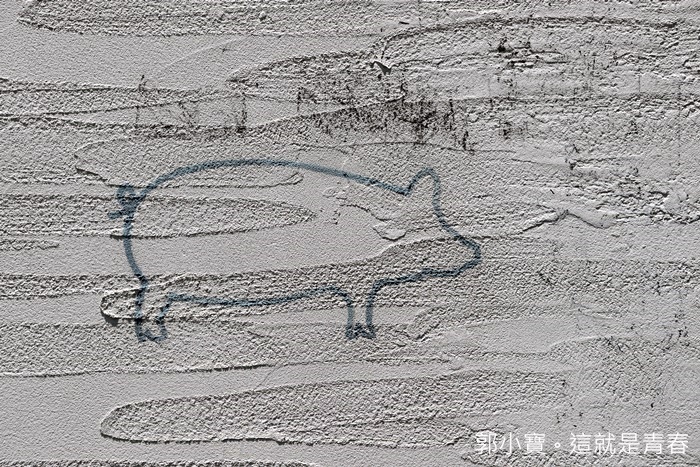 | 門口唯一像招牌的就是牆壁上畫的這一隻小豬,真的很神祕的一家店。 |