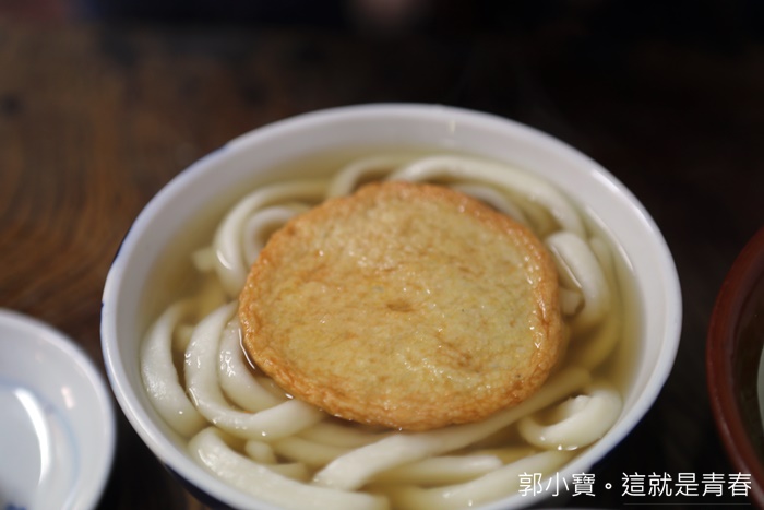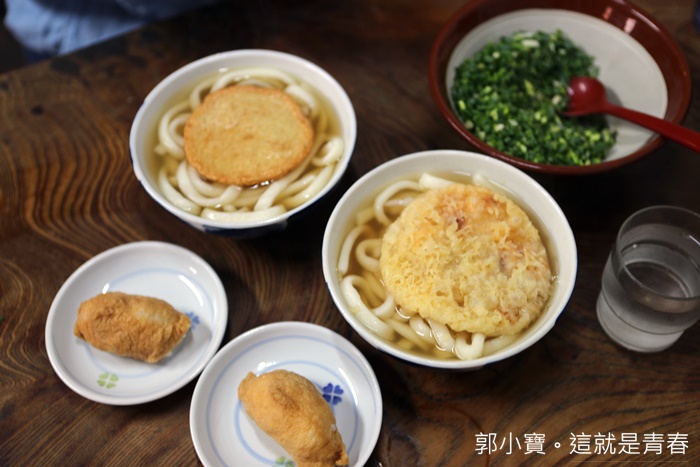 | 一下子我們的餐點就全部上桌了,福岡的烏龍麵還有一個特色,就是烏龍麵店裡麵都還有豆皮壽司,通常一組就是烏龍麵加上一顆豆皮壽司。 |