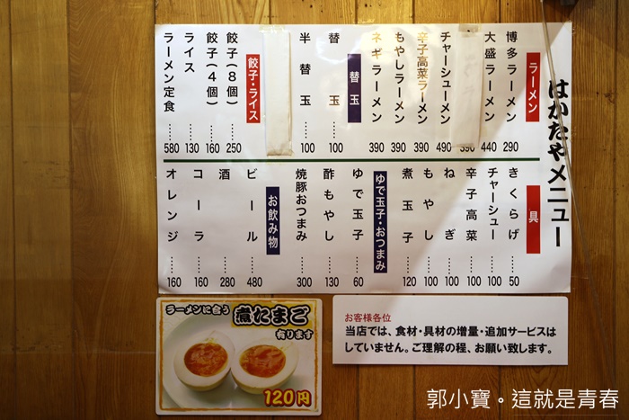 | 整體來說はかたや拉麵沒啥好挑剔的,那麼大心的拉麵店真的超便宜,口味又真的很不錯豚骨拉麵的基本功夫通通都有到位,想省錢的朋友來到博多一定要把這家拉麵店排進去的阿XDDD |