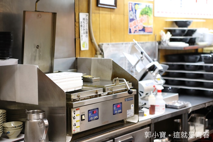 | 點完餐後工作人員就開始幫我煮麵,座位全部都是板前,所以都可以清楚的看到內部的工作環境,打掃得很乾淨,吸引我注意的是他們燒餃子的機器,好像很厲害XD |