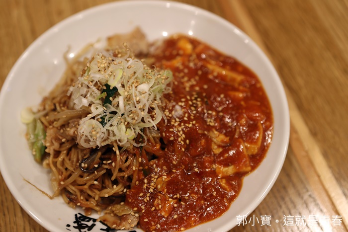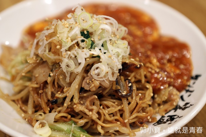 | 我個人很愛吃麻頭豆腐,這一盤麻婆豆腐炒麵感覺像是辣味噌做出來的,因為有剛剛的教訓,所以我先淺嘗一口麻婆豆腐,麻婆豆腐的勾芡很濃稠,帶有一點黏性的那種稠,跟我印象中的麻婆豆腐有點不太依樣,但是第一口的味到我還滿喜歡的。 |