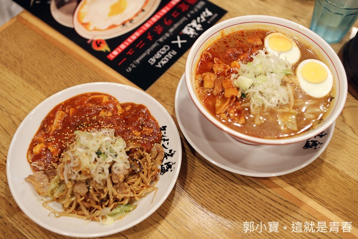 | 我跟朋友點了辣度中等的兩款麵食,一個是我的麻婆豆腐炒麵,另一碗就是它們的招牌笑盛 タンメン,看起來兩個麵款都是紅通通的,我們點的辣度是中等的,感覺應該也沒有很辣,但是一切都是假象阿XDDD |