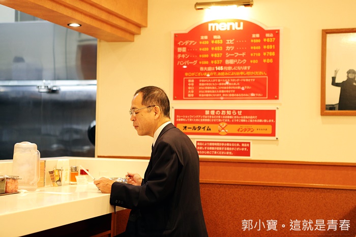 進入到店裡的時候確實有出乎我意料之外地多人,且來來去去的人潮非常多,上班族,家庭客、學生通通都有,一進入到店裡就聞到超香的咖哩香料味,換句話說,Indian藤森咖哩再帶廣的地位有點像是日本的吉野家牛井的地位,隨時隨地來Indian藤森咖哩吃飯是很正常的一件事。