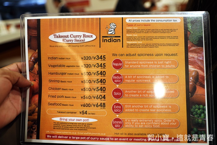 | 看了一下菜單發現Indian藤森咖哩店的價位都很便宜,且品項也非常豐富,辣度也是可以調整的,目前雖然沒有中文菜單,但是有提供英文菜單。 |