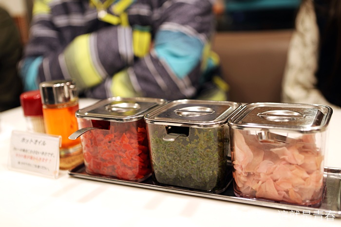 | 桌子上提供3種小菜,紅姜、什錦八寶醬菜、綠紫蘇醬菜。 |
