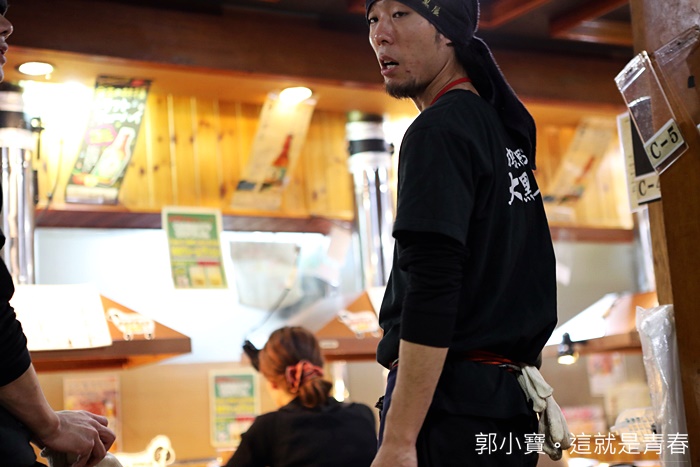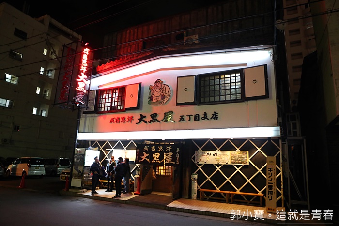 | 我們算是最後一批的客人,本來真的是沒位子了,靠日本的朋友進門溝通一下子才訂到的位子,人潮多到有些四人桌都還要放分隔板來當作兩人桌,可見得火紅程度,且大黑屋其實開在釧路並不是很鬧區的位子。 |