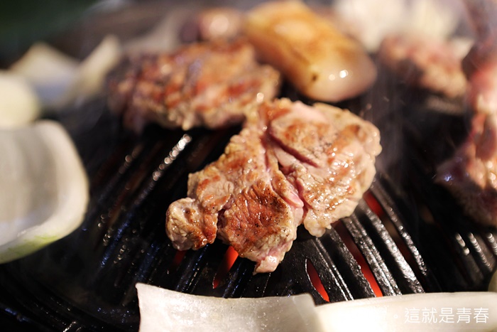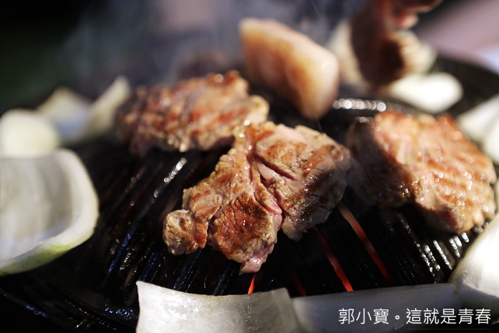 | 店員會先幫大家都各烤一份讓大家參考一下烤的時間跟熟度的拿捏,後面就要靠自己的手藝,幸好我的朋友手藝是一流的,後面烤得幾乎跟店員烤的是一模一樣。 |