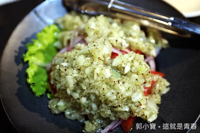 | 這一盤是我日本朋友請店家拿來的,我在菜單上也完全沒看到這個,這一盤有點像是吃和牛搭配的椒鹽,可以搭配肉品一起食用。 |