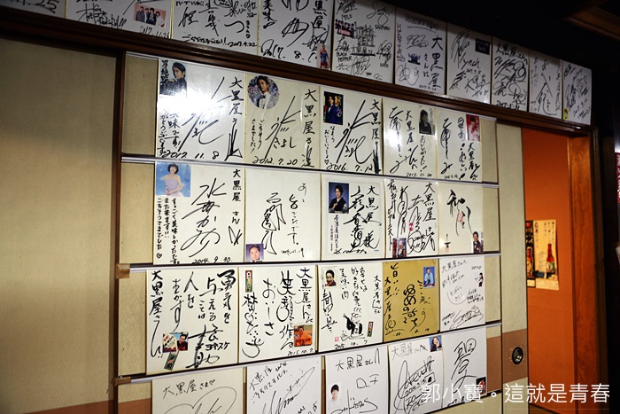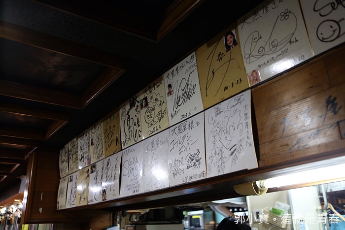| 整間店都貼滿了各家電視台跟名人的簽名板非常壯觀,這數量真的很恐怖,少見可以貼到那麼滿的簽名板,隨便看了一下很多都是日本非常知名的節目跟藝人。 |