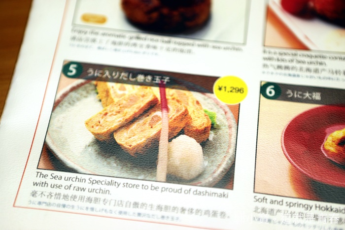 | 海膽玉子燒也是好奢侈的單品,玉子燒本身就是很多人喜歡的,再把海膽加入玉子燒其實不用吃也知道一定是好吃的阿,玉子燒的口感就是揪C,海膽的味道也一點點被蛋味搶到,但是搭配起來真的很不錯。 |