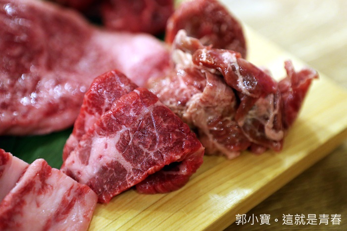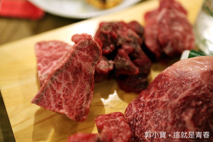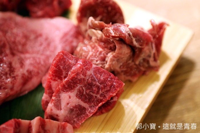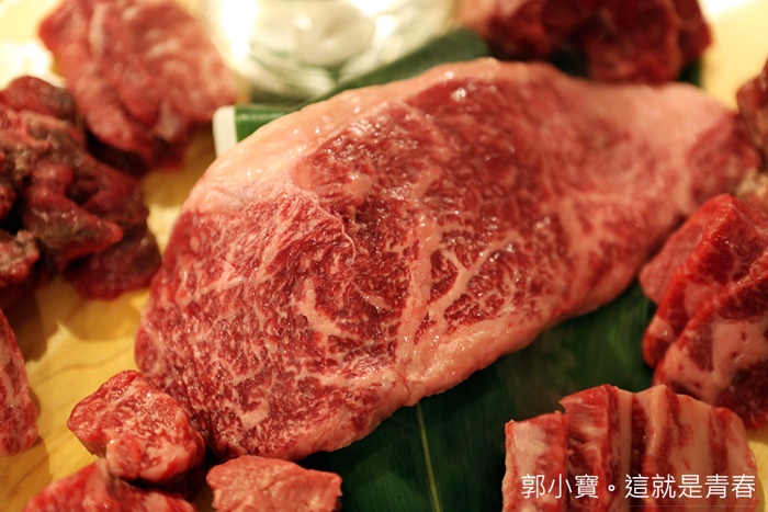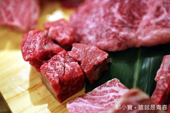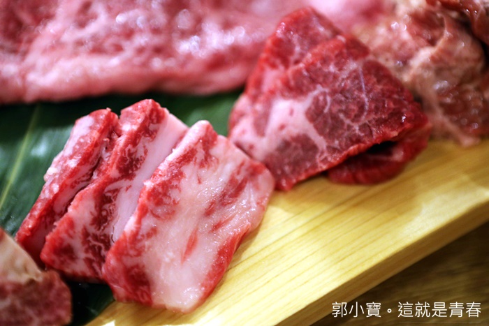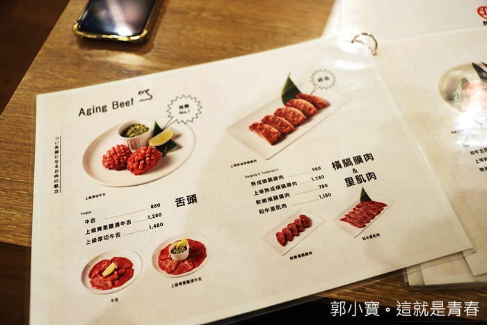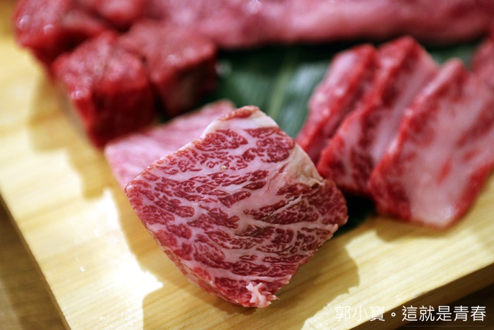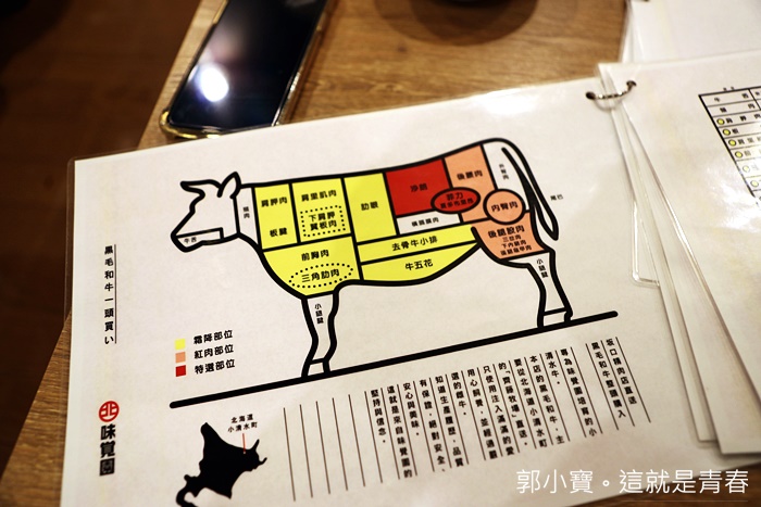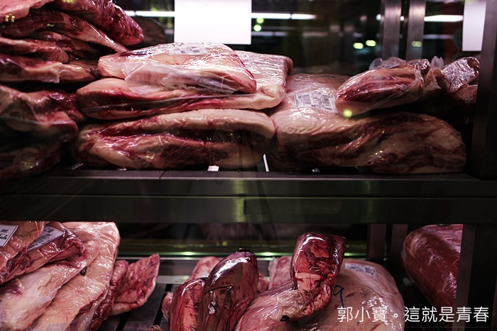 | 店門口的透明玻璃就展示著店內自製的熟成牛肉,強調她們家的和牛都來自北海道小清水町的牛隻,一次都買一整頭自己來分切,保證自家牛肉的品質,味覺園也有提供吃到飽的選擇,但是可能我們年紀大了,對吃到飽真的有點懼怕,因為真的吃不動了,情願吃單點吃巧一點。 |
