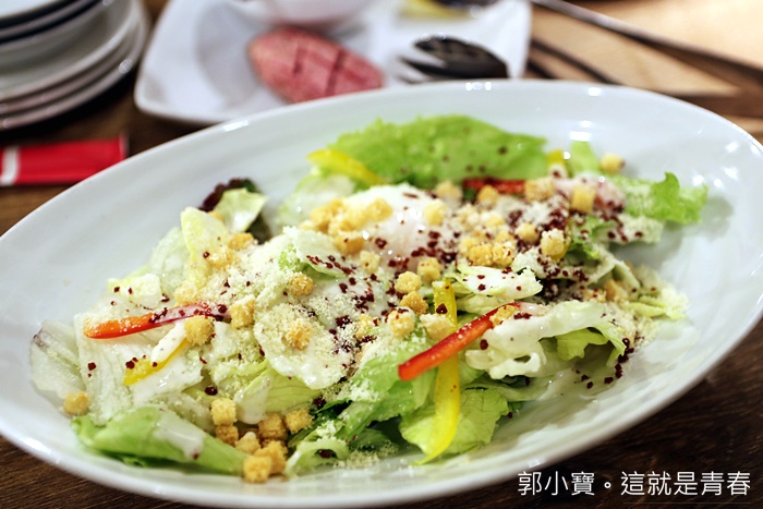 現場的女性朋友堅持要點個沙拉,對於男性朋友來說沙拉真的是來佔位子的,不過我家太妃倒是吃得很開心。