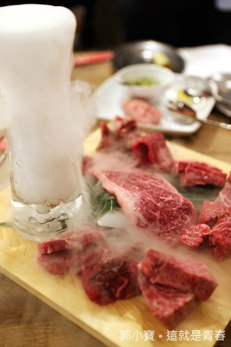 | 這一大盤上桌的時候還噴著大量乾冰,看起來真的非常威風,且這價位真的超級便宜的,超大一盤裡面超多和牛肉這樣台幣才3000多,在台灣可能只有一塊和牛牛排就沒了,在日本吃和牛真的非常的過癮又便宜。 |