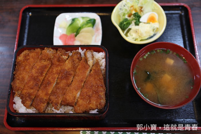 | 釜平的炸豬排飯有分大中小三種,我點的是屬於重的豬排飯,就是要便當盒裝的豬排飯,日本很多例如鰻魚重、豬排重都是等級最高的,其實內容物差不多,差的是便當盒的價錢,好的容器一個甚至高達百萬日圓。 |
