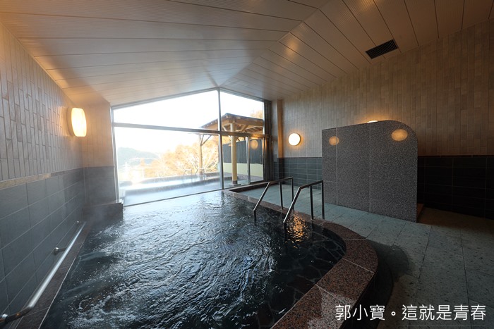 | 男湯的室內跟露天空間都很不錯,即使在室內也可以透過落地窗看到窗外的風景,露天的部分則是當天氣很冷的時候,在戶外泡湯真的超爽的!! |