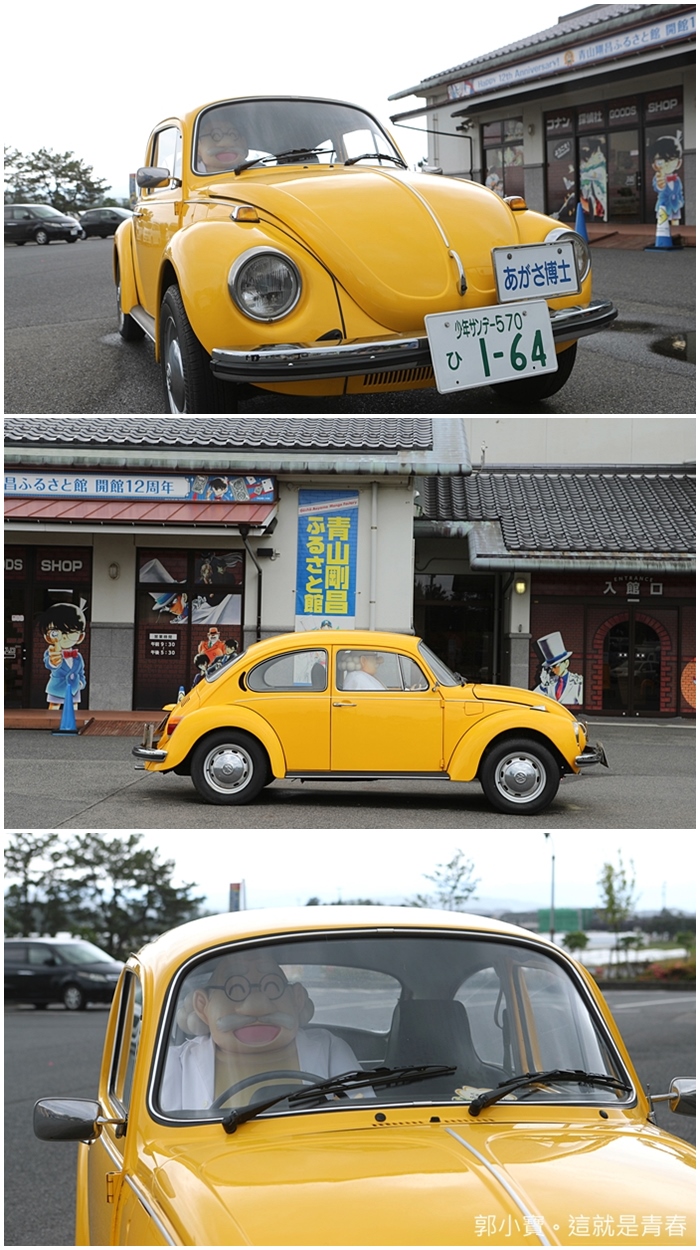 | 門口處還有阿笠博士耶,招牌的黃色金光色搭配阿笠博士的招牌笑容,這一台車子也是必拍景物,基本上每個人都會在這邊留念,全部都是1:1等模製作出來的阿,不得不說日本對於細節真的是很用心。 |