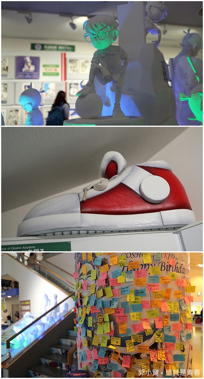 | 房子夾層中發現了柯南的科技鞋,還有滿滿的便利貼寫滿了對柯南的祝福話語,因為看不懂日文字,所以也不知道大概寫了什麼,但是對於柯南迷來說,這個地方就是聖地啊! |
