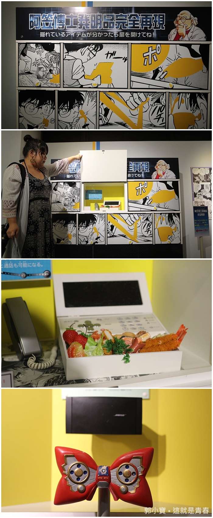 | 當然不能錯過阿笠博次的發明區,每一個格子外面搭配柯南使用這些發明的方格漫畫,大家可以猜猜看柯南正在使用哪項科技,翻開蓋子後模型就會展現在裡面,猜猜看你能猜中幾個。 |