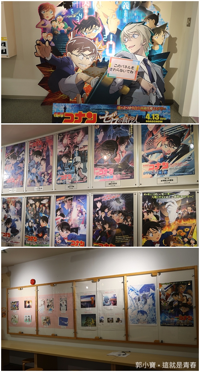 | 劇場版的電影海報都有保留起來,一整排超壯觀,真的可以稱上博物館的級別了,任何跟青山剛昌、柯南有關的點點滴滴全部收藏的很好又豐富。 |