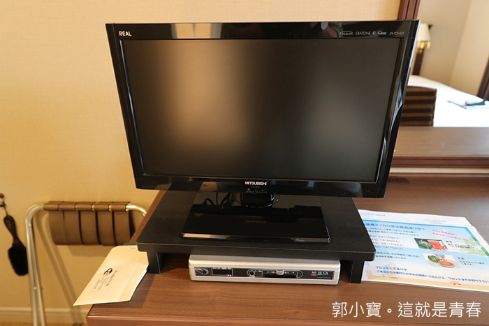 | 電視尺寸不大,直接是擺在桌子上。行李架則是在書桌旁。 |
