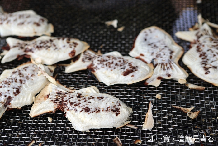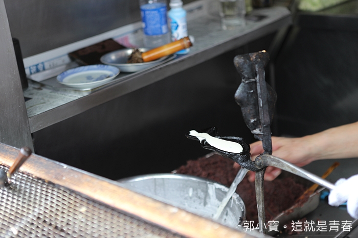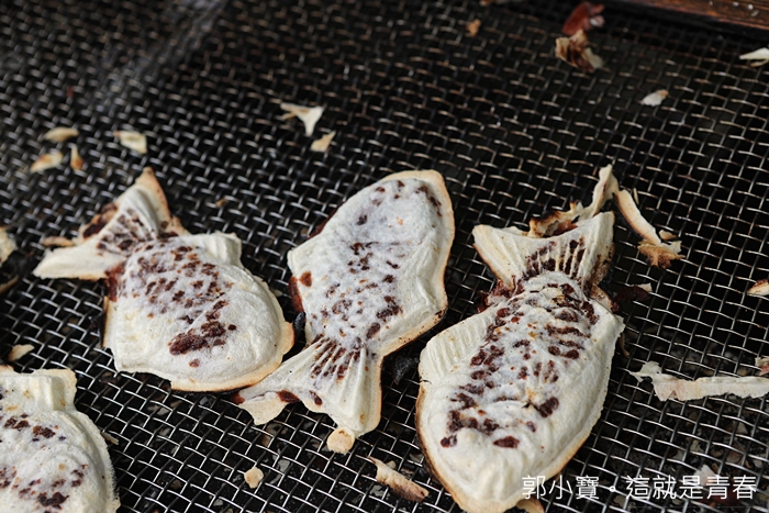 米澤鯛魚燒製作的方法就屬於最古老的方式,一根一根的鯛魚燒鐵架塗上麵粉跟內餡後再放入炭火中燒,一根鐵條紙製作一個鯛魚燒,真的是耗時費力。