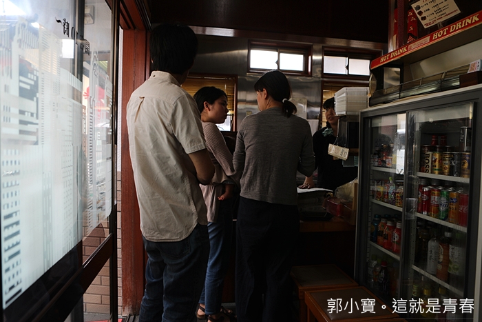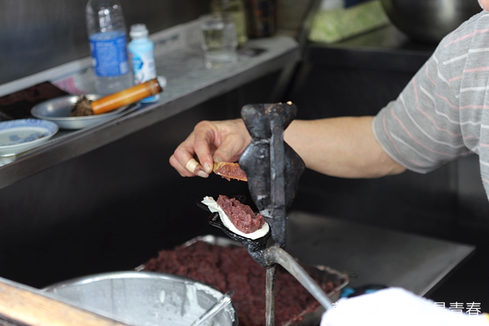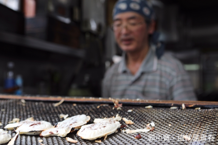 | 老闆就坐在門口旁邊一塊一塊地端出可口的鯛魚燒,老闆年紀頗大但是笑口常開,詢問過老闆是否可以拍照以後,老闆也很大方的點頭答應,還讓我們開窗戶拍照XD