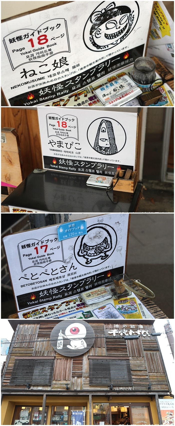 | 這裡的圖章大概蓋完全部的人物應該可以蓋滿一本,逛街的時候默默的街近商家陸續開門的時間了,可以看到越來越多開門營業的商店,各式各樣的店鋪也都是以鬼太郎為主經營著。 |